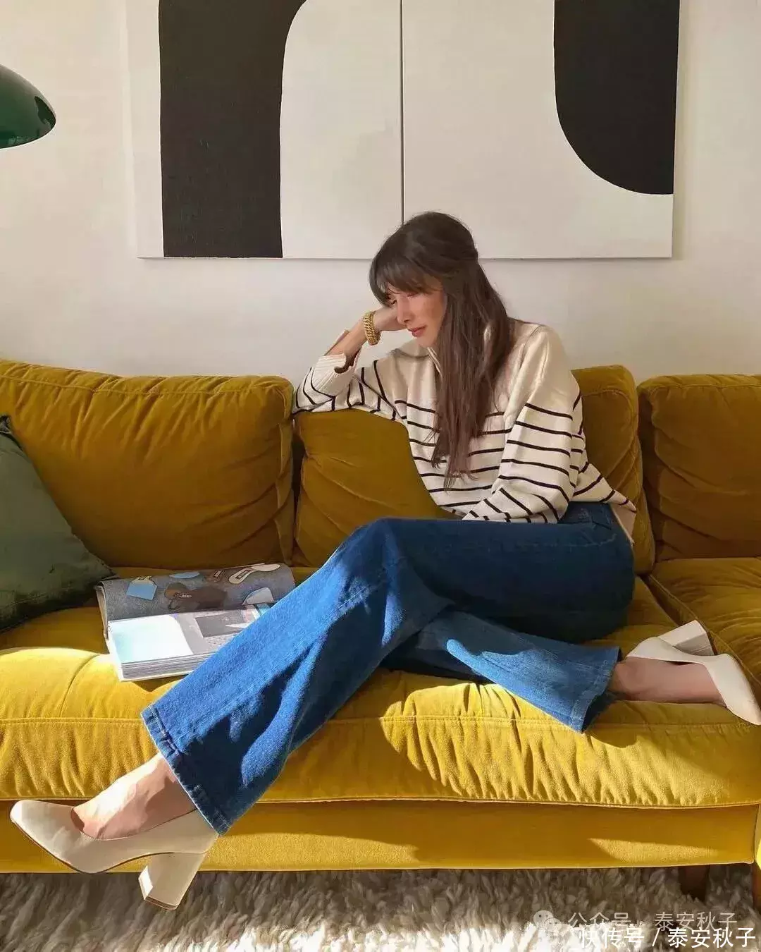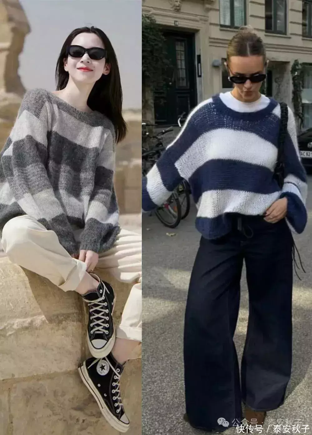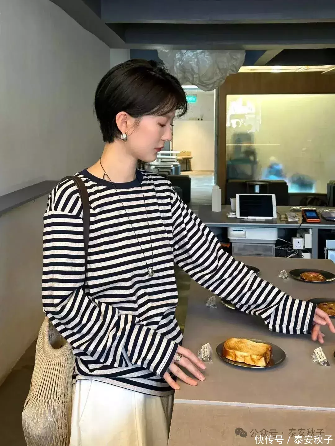 淌若你是肉体魁伟纤细,且有勇于展现自我的女生,秋天里不错选宽宽大大的粗条纹衫来穿,不错让你的造型须臾多出一点随心、倜傥感。像这件宽松版的灰白粗条纹衫,十一出游时一稔相等空闲从容。搭配米白色的失业裤,就会给东说念主一种旺盛慵懒的嗅觉,也太端淑了吧。