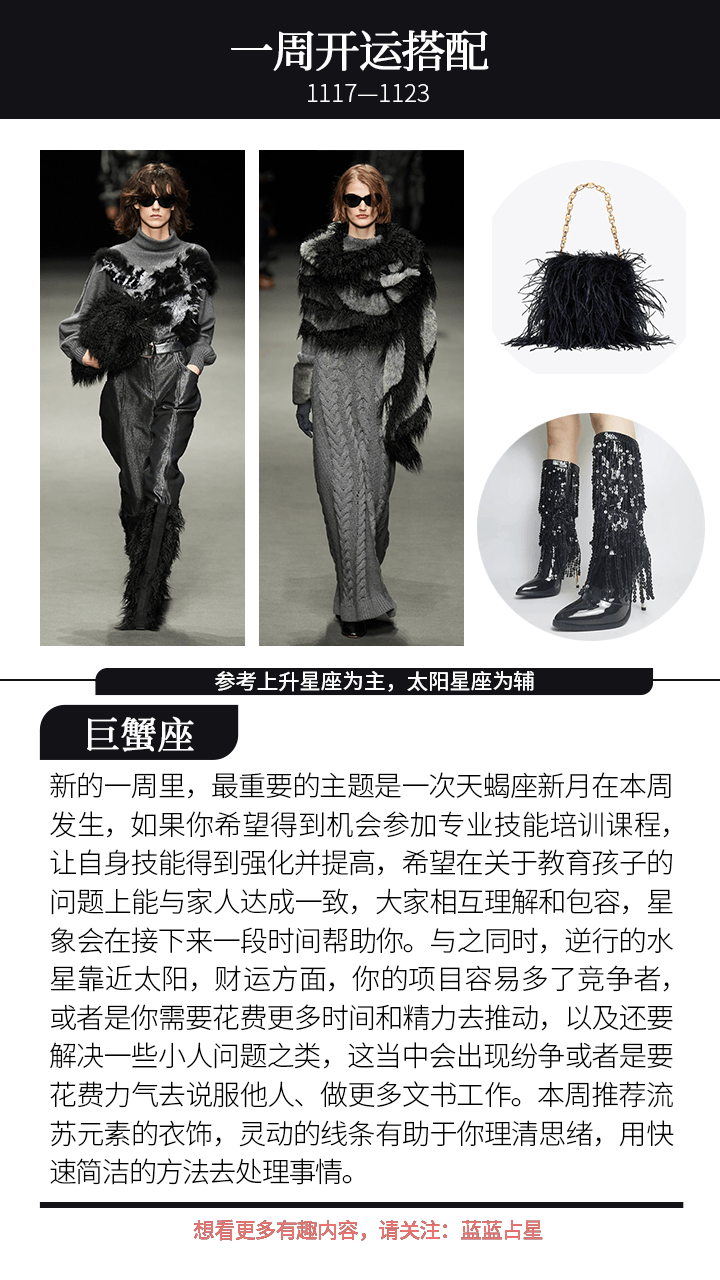 1117-1123一周运势排名榜*参考飞腾星座为主,太阳星座为辅